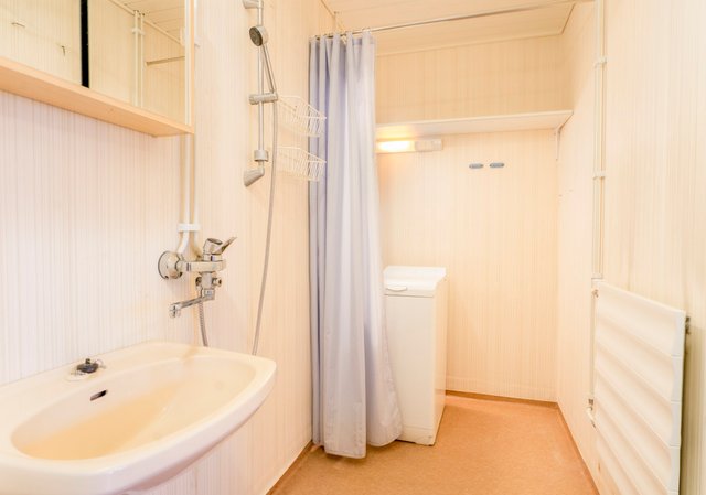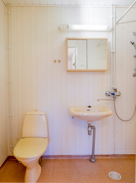 - WC-istuin, suihku, pesukone, pesukoneliitäntä, peilikaappi, ja pesuallas