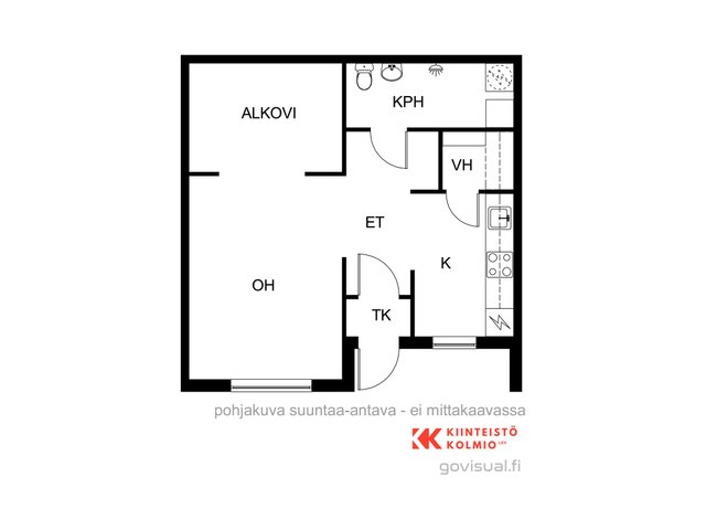Asunnon 42,4 neliötä tarjoavat kompaktin ja toimivan tilaratkaisun.
