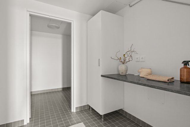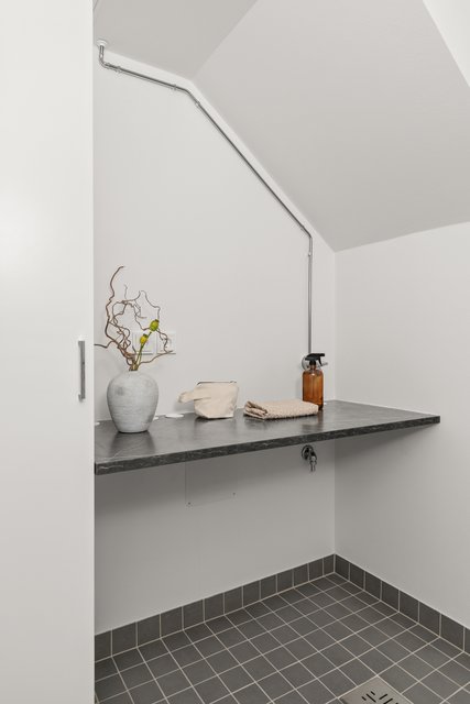 - Pesukoneliitäntä, lattialämmitys, pesuallas, lattiakaivo, lastenhoitopöytä/taso, silityspöytä/taso, pyykkikaapit, kurapiste, ja pöytätaso