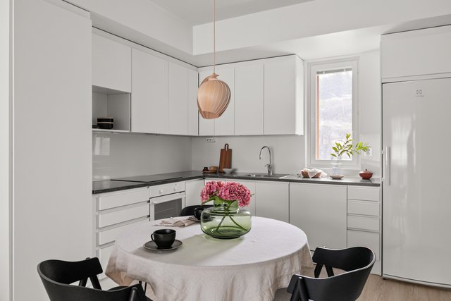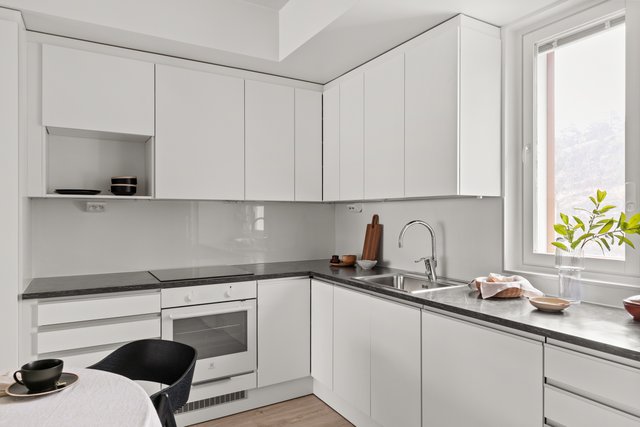 - Kodinkoneet valkoisia, astianpesukone kalustepeitteinen.
