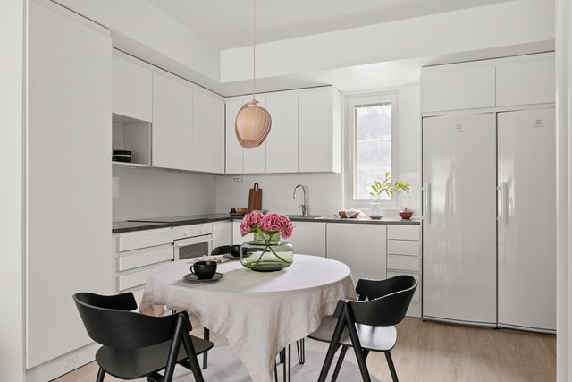 - Jääkaappi, erillinen pakastin, uuni, liesi, liesituuletin, ja astianpesukone