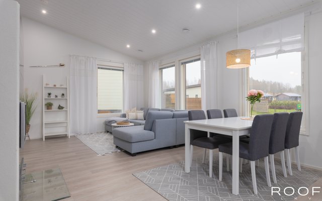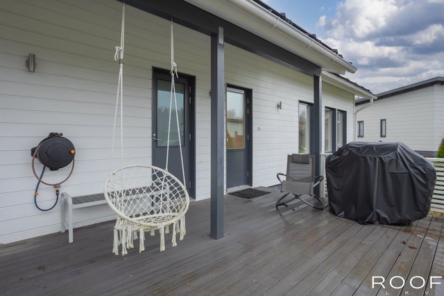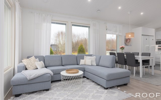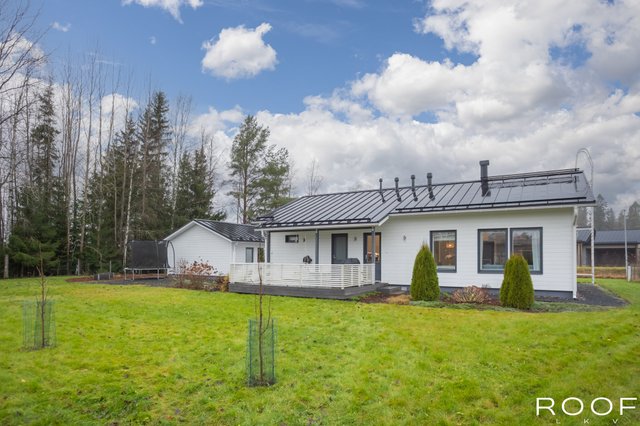 Tämä valoisa ja moderni omakotitalo sijaitsee rauhallisella alueella Hausjärven Monnissa vain noin 6 km. etäisyydellä Hyvinkään keskustan palveluista. Vuonna 2018 valmistunut talo tarjoaa mukavuutta ja toimivuutta yhdessä tasossa. Olohuone ja keittiö ovat yhtenäistä avaraa tilaa. Talossa on kaksi wc:tä ja käytännöllinen tilava kodinhoitohuone, josta on oma uloskäynti.