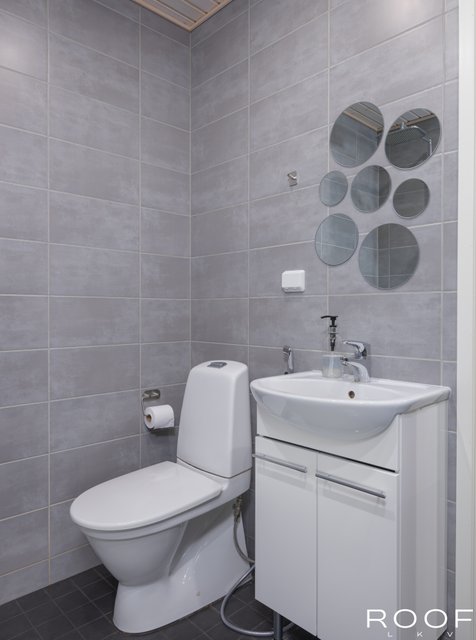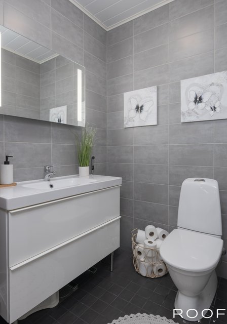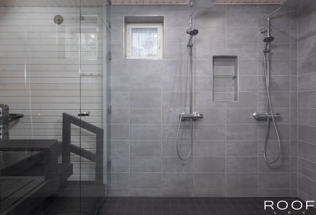 - WC-istuin, lattialämmitys, bidee-suihku, ja kaksi sadesuihkua
