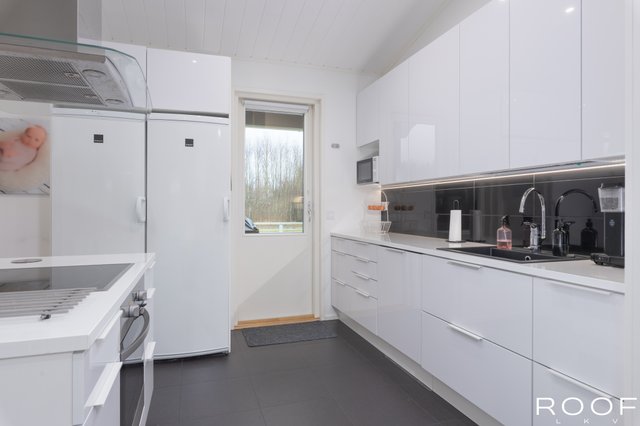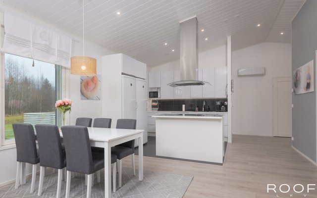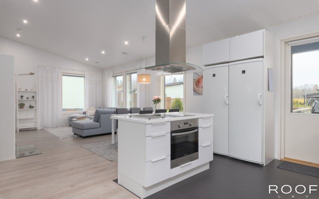 - Jääkaappi, erillinen pakastin, liesituuletin, astianpesukone, erillisuuni, ja keittiösaareke