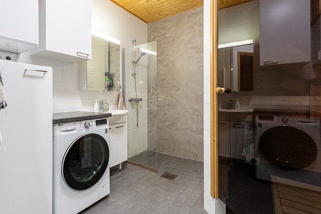 - Pesukoneliitäntä, suihkuseinä, allaskaappi, suihku, peilikaappi, wc-istuin, lattialämmitys, ja kiinteät valaisimet