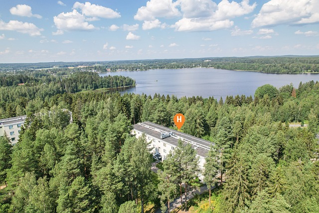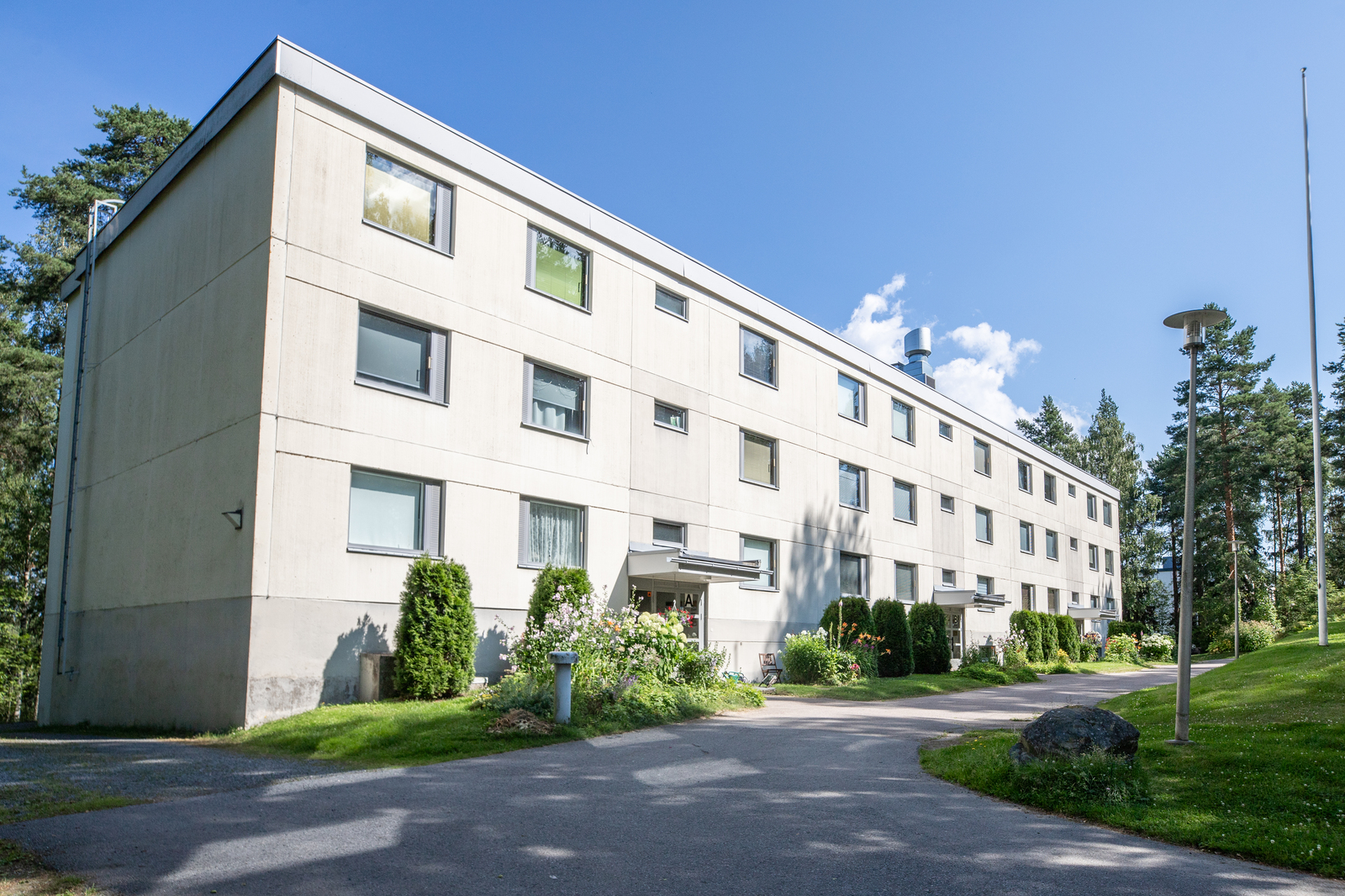 Viihtyisässä pihapiirissä, vehreyden keskellä, on nyt tarjolla tilava kahden makuuhuoneen asunto, jossa keittiön ja olohuoneen välinen seinä on purettu, ja näin asunto on todella avara. Upea koko huoneiston levyinen lasitettu parveke metsäisillä näkymillä on todellinen lisähuone lähes puolet vuodesta. Parvekkeella on myös oma pieni varasto. Asunnossa on alkuperäinen sauna, jossa siis voi saunoa oman aikataulun mukaan, ja wc on erillinen. Saniteettitilat on uusittu putkiremontin yhteydessä, mutta muuten asunto kaipaa pintaremonttia.