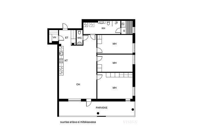 4 h, avokeittiö, erill.wc, kph/s, vh, lasitettu parveke (Yj. 4h+kt+s)