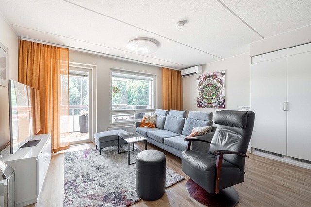 - jäähdyttävä ilmalämpöpumppu parvekkeella: ylä- ja alaosasta säädettävät, ruutukohtaiset aurinkosuojaverhot sekä lautalattia. Lisätietoja sisältyvistä varusteista: sälekaihtimet/rullaverhot, verhotangot.