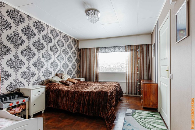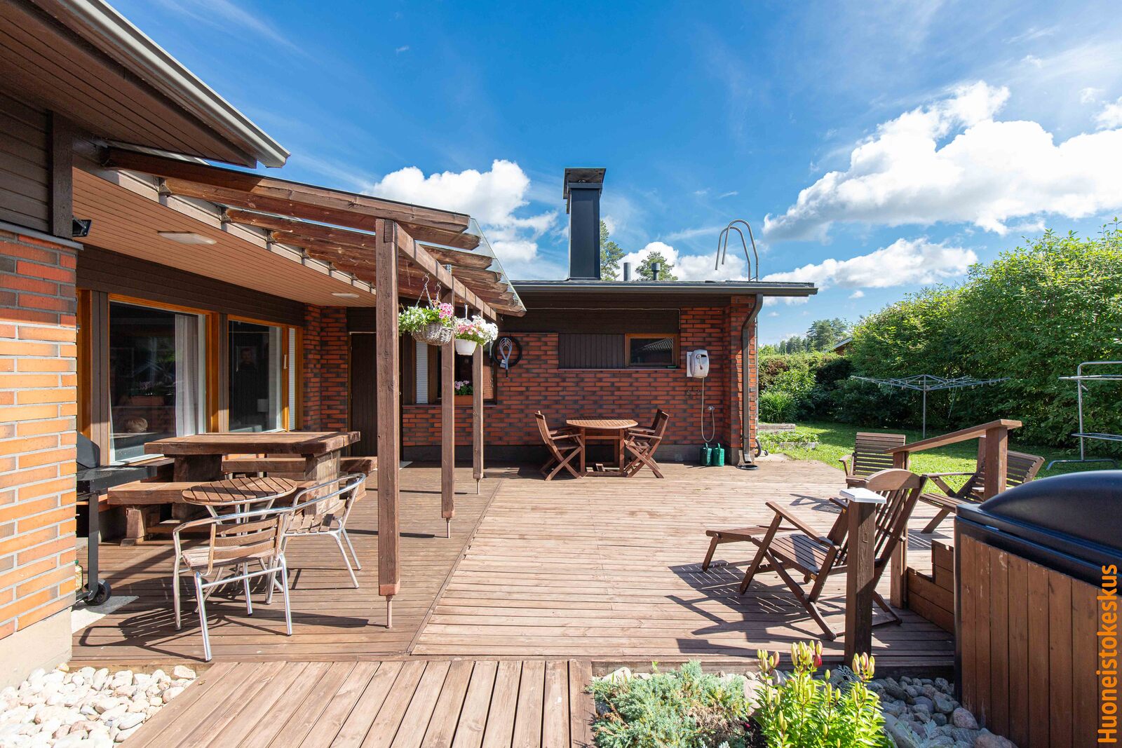 Suuri keittiö, jossa runsaasti kaappi- ja laskutilaa sekä paikka ruokapöydälle. Kodin sydämenä toimii keskelle asuintiloja sijoitettu avara olohuone, josta kulku huoneisiin. Kolmen alkuperäisen makuuhuoneen lisäksi takkahuone ja varastosta asuintilaksi muutettu lisähuone. Säilytystilaa tarjoaa reilu vaatehuone sekä asuinrakennuksen yhteydessä oleva autotalli.