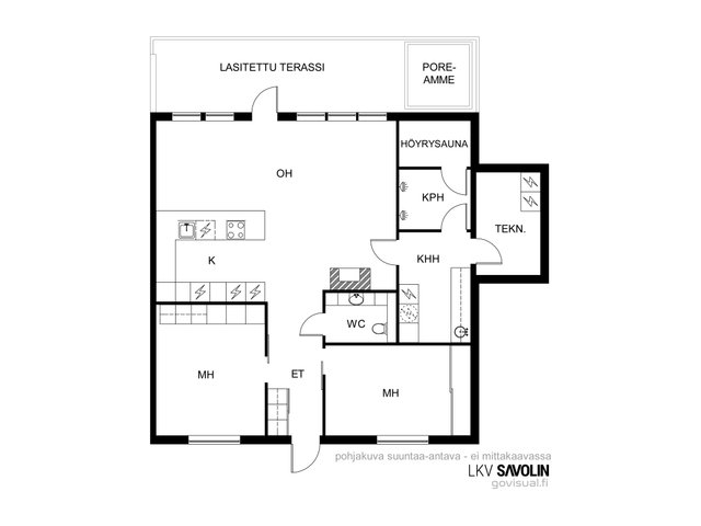 3h, k, khh, kph, höyrysauna, wc, lasitettu terassi