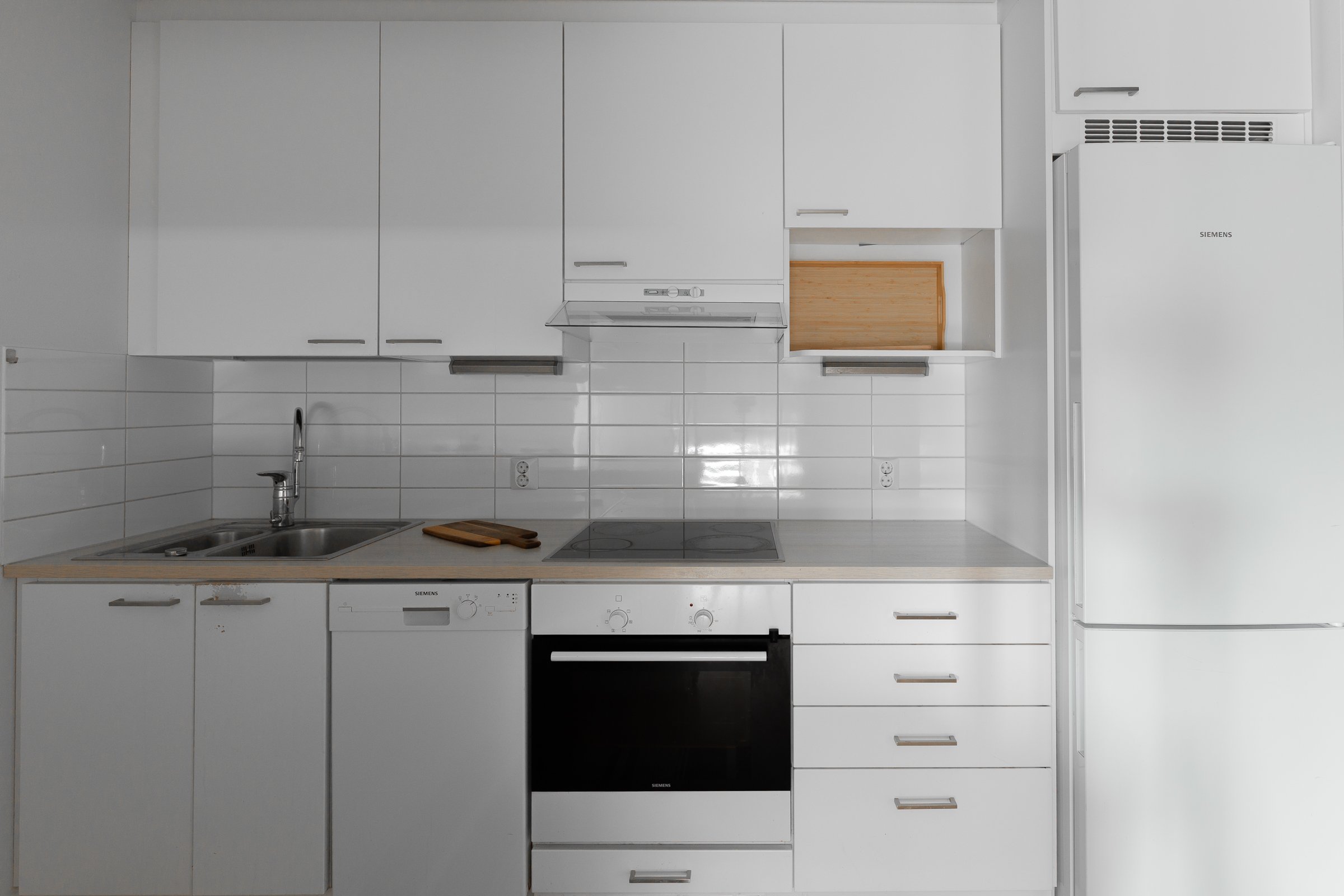 - Jääkaappipakastin, uuni, liesi, astianpesukone, ja liesituuletin