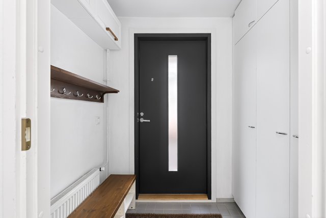 - Eteisaula, jossa runsaasti kaappitilaa. Seinät: maalattu Lattia: tammiparketti Tuulikaappi, jossa kaappeja. Seinät: maalattu Lattia: laatta
