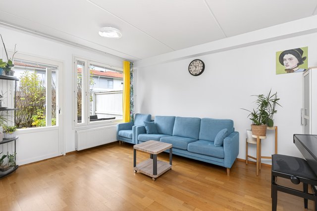 Tämä kaksikerroksinen koti tarjoaa mukavasti tilaa ja toimivuutta arkeen. Alakerrassa on avara olohuone, josta suuret ikkunat avautuvat aurinkoiselle etelään/lounaaseen suuntautuvalle pihalle ja terassille – täydellinen paikka nauttia kesäpäivistä. Keittiössä on runsaasti kaappi- ja työtilaa, ja se on suunniteltu käytännöllisyyttä ajatellen.