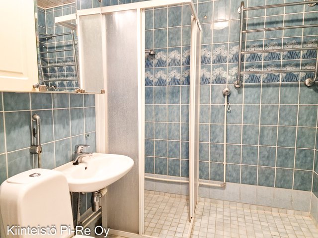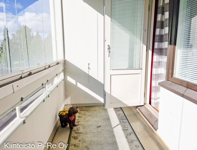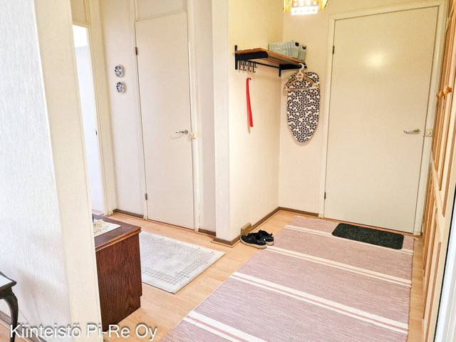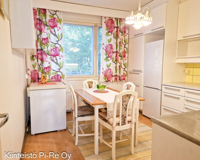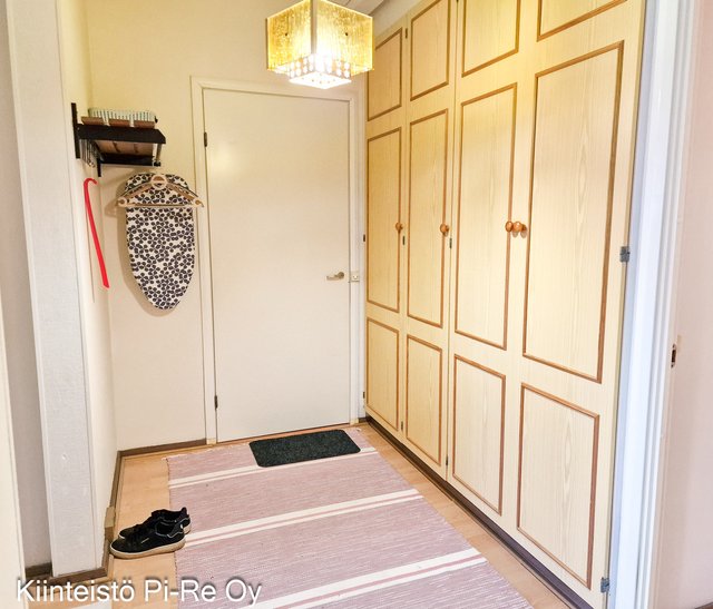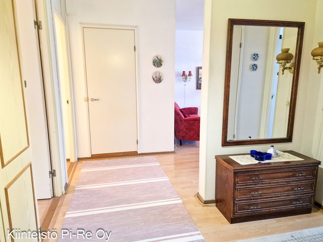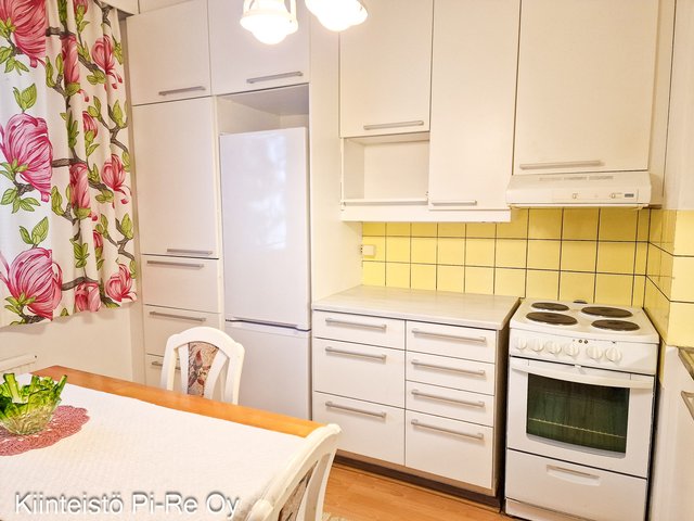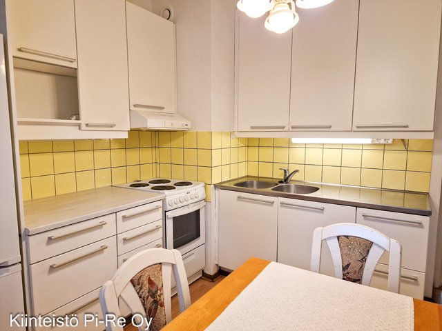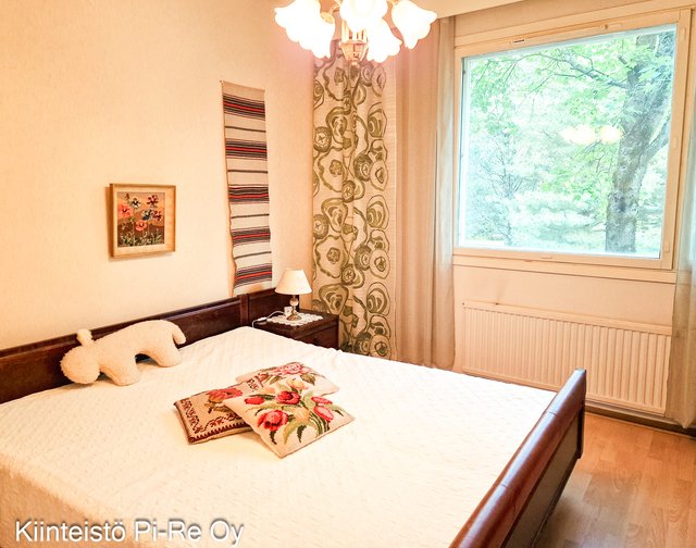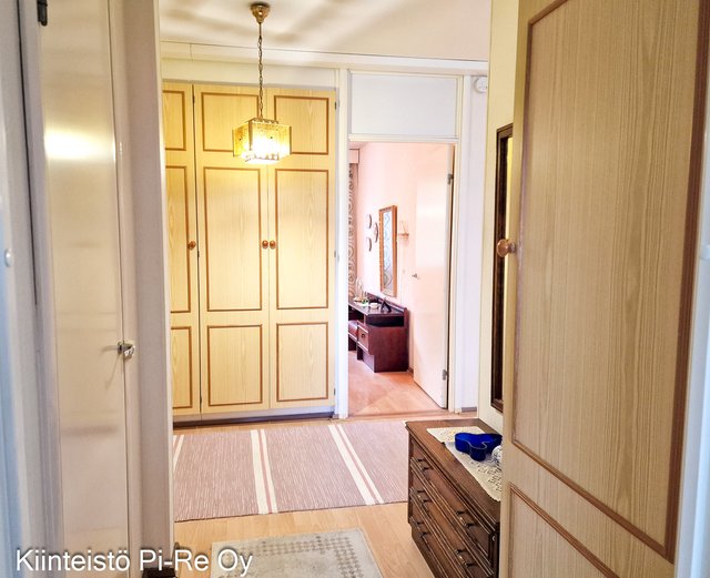 - KEITTIÖ: Varustuksena jääkaappi/pakastin, sähköliesi ja liesituuletin. Lattiassa laminaatti ja seinissä maali/tapetti sekä välitilassa laatta. Keittiöön mahtuu hyvin ruokapöytä. OLOHUONE: Lattiassa laminaatti ja seinissä tapetti. Olohuoneesta käynti parvekkeelle. MAKUUHUONEET: Laminaatti lattioissa ja seinissä tapetti. Toisessa makuuhuoneessa kaapisto. KYLPYHUONE: Wc kylpyhuoneen yhteydessä. Lattiassa laatat, seinät kaakeloidut ja katossa paneeli. Varustuksena wc, käsienpesuallas, peilikaappi, suihkukaappi, pyyhekuivain ja pyykinpesukoneelle liitäntä ja hyvä tila. SAUNAOSASTO: Taloyhtiössä sauna. PARVEKE: Lasitettu parveke. SÄILYTYSTILAT: Eteisessä vaatehuone ja kaapisto sekä makuuhuoneessa kaapisto. Huoneistokohtaiset varastot.