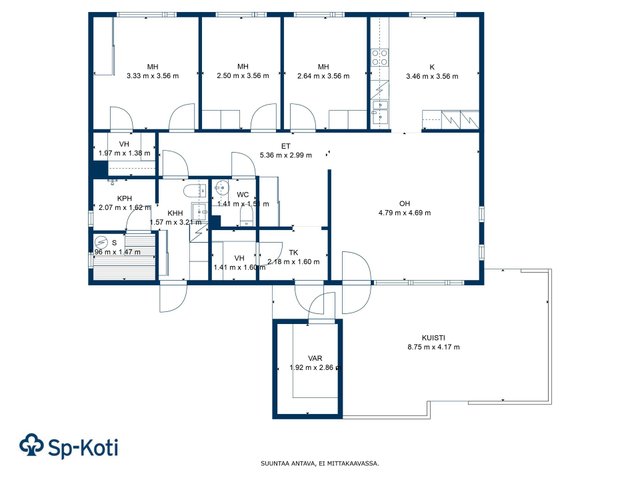 - Vaatehuone, kylmä ulkovarasto, kaapistot ja sisävarasto ja leikkimökki/varasto