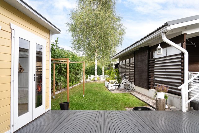 Keittiö remontoitu ja muut pinnat sekä kylpyhuone hyvässä ja siistissä kunnossa. Saunassa, kodinhoitohuoneessa ja erillis-wc:ssä tehty päivitystä ja kalusteiden uusimista. Makuuhuoneet reilunkokoisia ja säilytystilaa runsaasti (vaatehuone, kaapistot, sisävarasto ja kylmä ulkovarasto). Olohuoneesta käynti suojaisalle osittain katetulle terassipihalle.