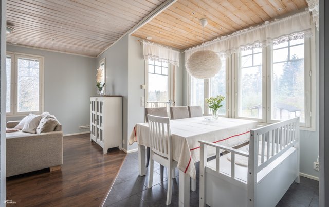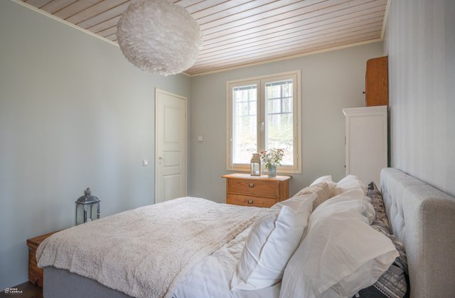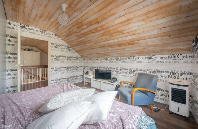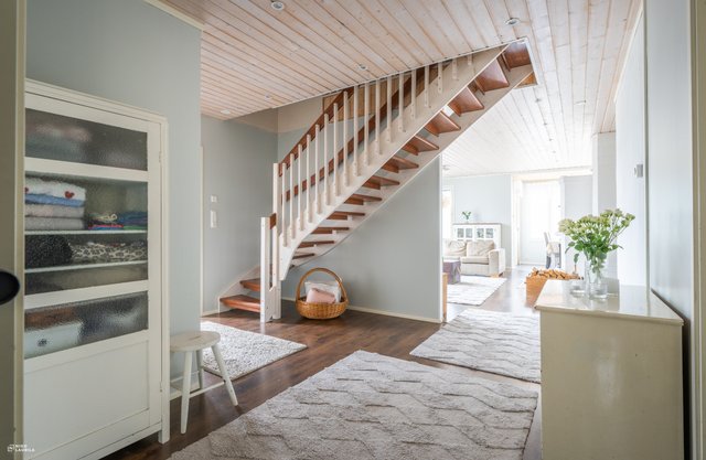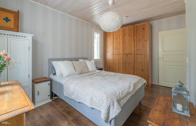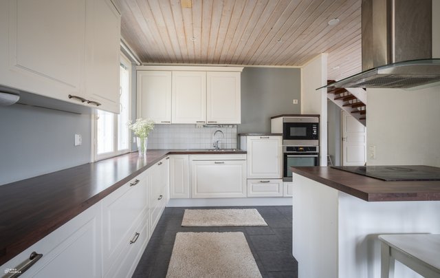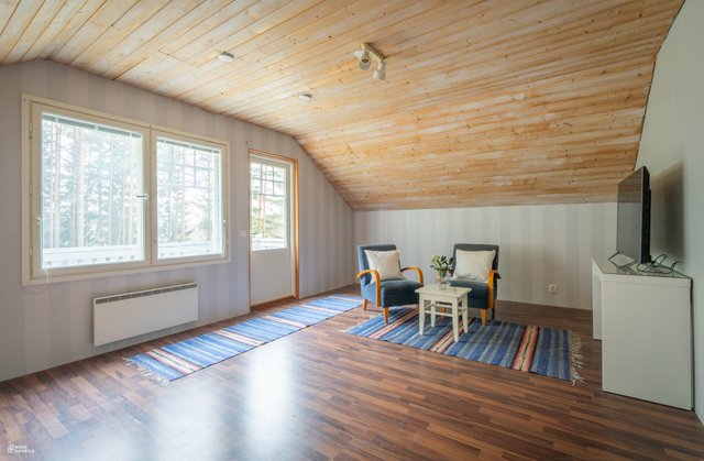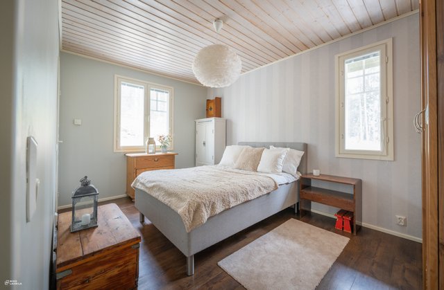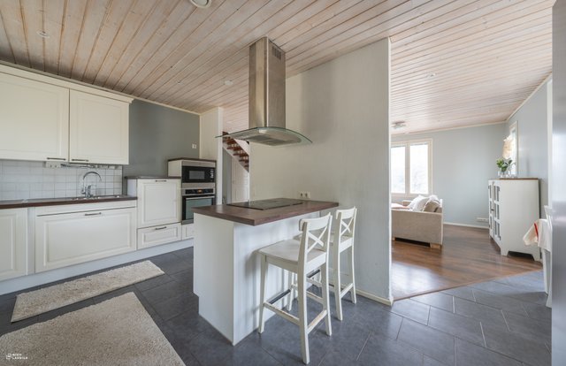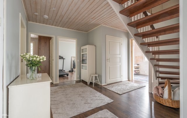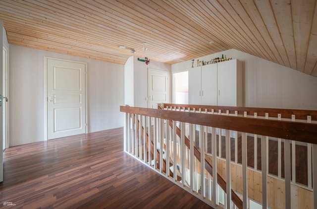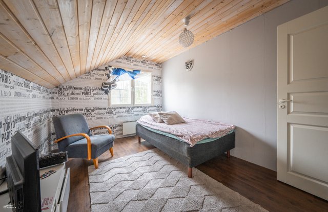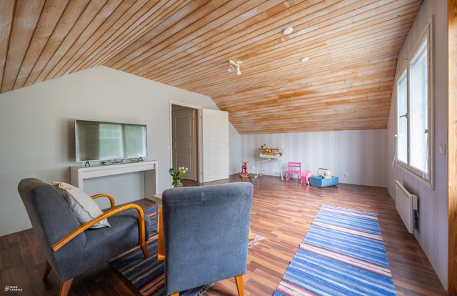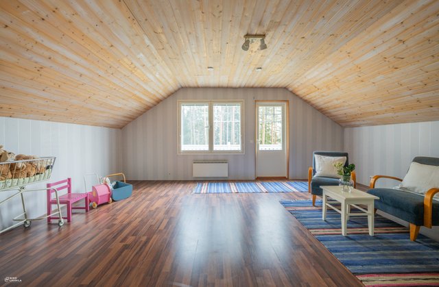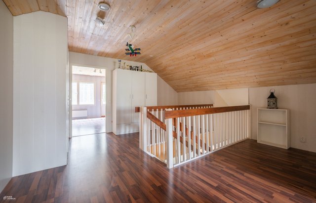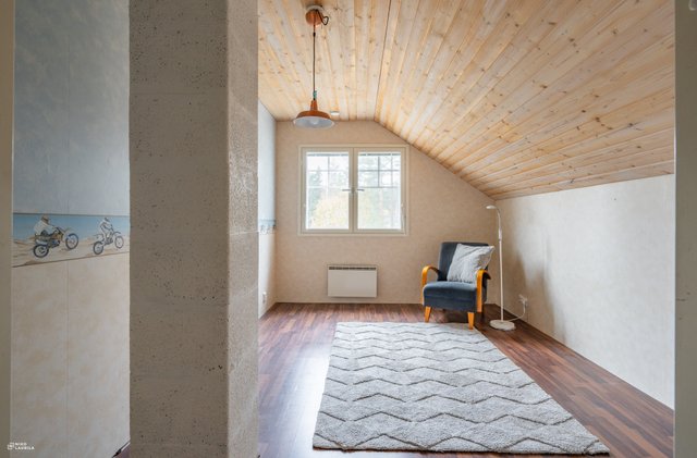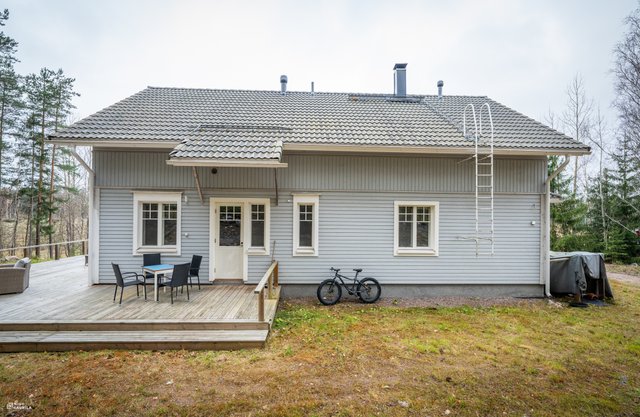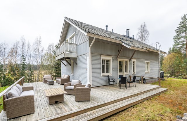 Tämä vuonna 2011 valmistunut puutalo tarjoaa runsaasti tilaa suuremmallekin perheelle. Talossa on kuusi huonetta, joista viisi ovat makuuhuoneita. Alakerrassa on kaksi makuuhuonetta yläkerrassa kolme. Yläkerran parvekkeellinen iso makuuhuone toimii erinomaisesti myös esimerkiksi arkiolohuoneena. Alakerran olohuone, ruokailutila sekä keittiö muodostavat yhtenäisen kokonaisuuden. Alakerrassa on myös tilava eteinen, erillinen wc sekä pesutilat (myös wc) ja sauna.