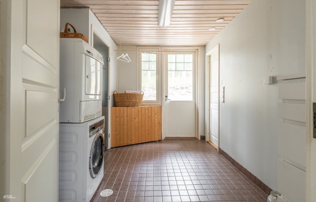 - Pesukoneliitäntä, lattiakaivo, tila pesutornille, ja lattialämmitys