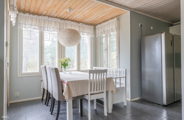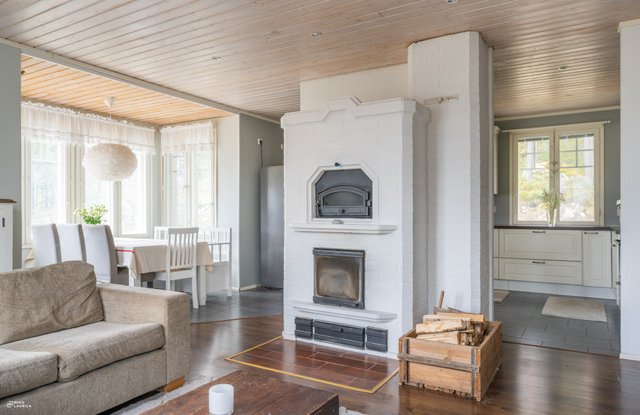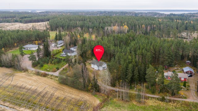 Tämä tilava Kastellin omakotitalo sijaitsee rauhallisella ja luonnonläheisellä alueella metsän reunalla Porvoon Voolahden saaristokylässä. Talon takana on mäntymetsää ja talon edessä peltoalue.
