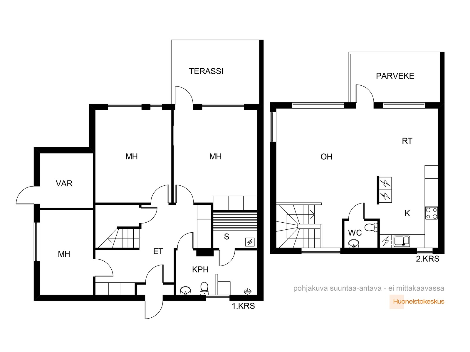 Yläkerrassa sijaitsee avokeittiö, joka yhdistyy tyylikkäästi olohuoneeseen. Täältä on käynti etelään suuntautuvalle parvekkeelle, jossa voit nauttia vehreistä maisemista. Avokeittiö tarjoaa runsaasti kaappi- ja laskutilaa sekä modernit kodinkoneet, jotka tekevät ruoanlaitosta helppoa ja mukavaa, wc löytyy asunnon molemmista kerroksista.