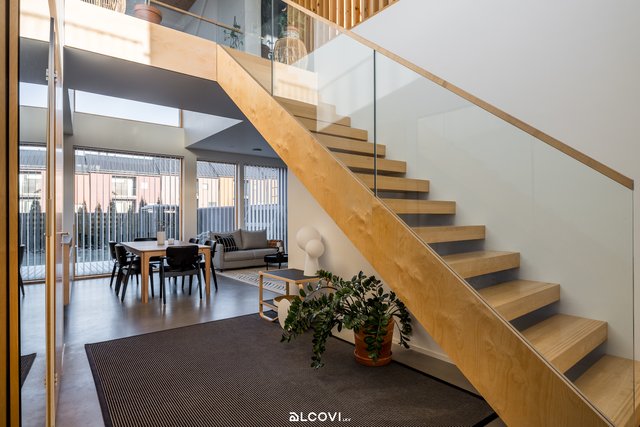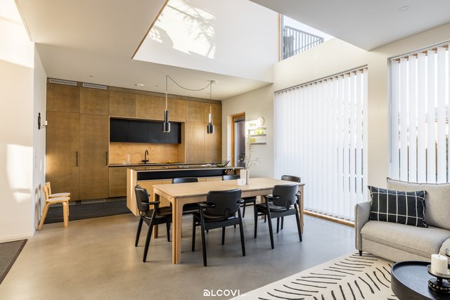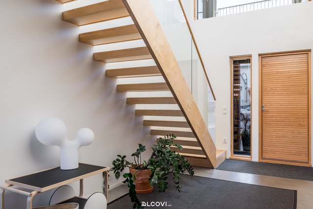 Kolu Arkkitehtien suunnittelema upea townhouse hurmaa tarkkaan mietityillä yksityiskohdillaan. Vuonna 2018 valmistuneessa hankkeessa on rakennettu neljä ulkoa vastaavanlaista townhousea, jotka on suunniteltu asukkailleen unelmakodeiksi – sekä materiaalien että toiminnallisuuden osalta. Ilmavuus, kodikas tunnelma ja laadukas skandinaavinen design muodostavat kokonaisuuden, joka vie mennessään!