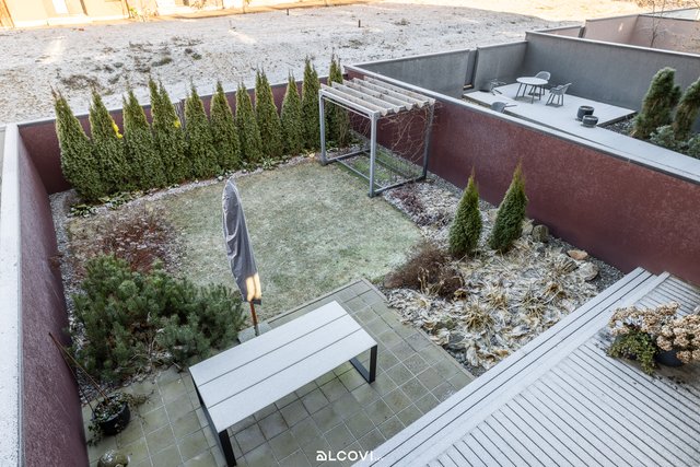 - Piha on viimeistelty nurmella, istutuksin, lisäksi tilava terassialue ja pergola. Piha-alue on aidattu. Pitsinvirkkaajankatu 10:n kanssa on laadittu yhteisjärjestelysopimus piha-aidan osalta.