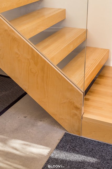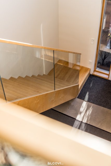 - Yläkerran asuinhuoneiden ja käytävän lattiamateriaali on öljyttyä Arborretin koivuparkettia. Alakerran asuintilojen lattia on silikaattikäsiteltyä teräsbetonia.