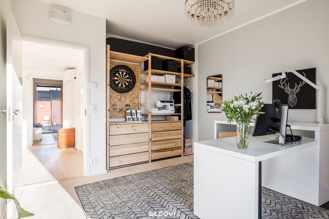 - Pystylamellikaihtimet, naulakot, spotti-valaisimet (rimakatto), ilmalämpöpumppu, pyykinpesukone, kuivausrumpu, Samsung Frame-televisio