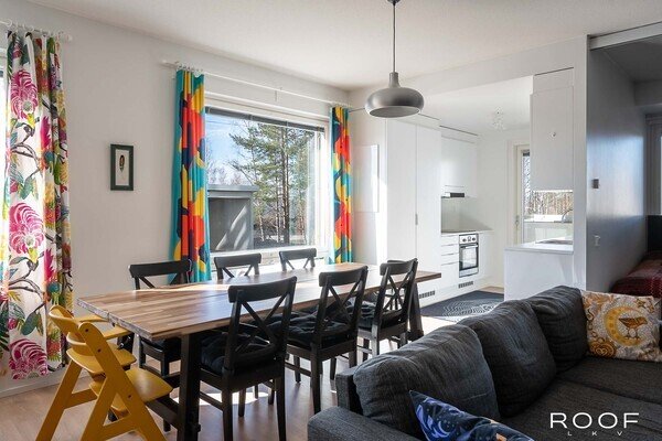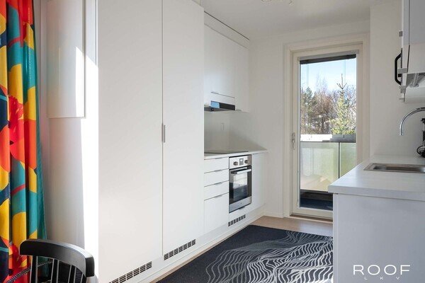 Tervetuloa tutustumaan tähän ensimmäisen kerroksen kulmahuoneistoon, jossa yhdistyvät valoisuus, käytännöllisyys ja kodikas tunnelma. Asunnossa on toimiva ja selkeä pohjaratkaisu: keittiö ja olohuone muodostavat avoimen ja yhtenäisen oleskelutilan, josta on kulku lasitetulle parvekkeelle. Olohuoneesta on käynti molempiin makuuhuoneisiin, ja eteisestä pääsee suoraan kylpyhuoneeseen ja omaan saunaan.