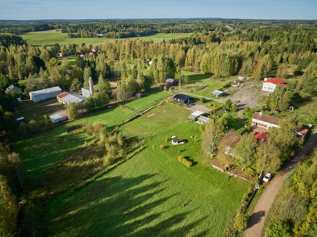 - Nyt myynnissä olevaan kiinteistökokonaisuuteen kuuluu viisi erillistä tilaa rakennuksineen. Asuinrakennuksen ja navetan yhteydessä on sorapintainen piha-alue. Runsaasti puutarhapihaa, jolla istutuksia ja omenapuita, sekä peltoaluetta. Konesuojan piha-alue on kunnostettu kestämään raskaita koneita ja salaojitettu. Alueella on myös ratsastuskenttä., joka on tehty vuonna 2019. Lisäksi kiinteistökokonaisuuteen kuuluvalla alueella sijaitsee hieman metsää, josta saa polttopuita, sekä 1,24 ha tukikelpoista peltoa. Tukikelpoinen peltoalue on tällä hetkellä vuokrattuna.