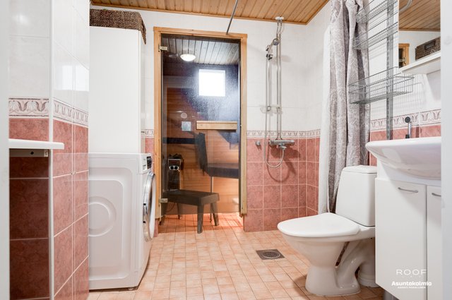 - Varustus: Suihku, peilikaappi, pesukoneliitäntä, wc-istuin, suihku, lattialämmitys.