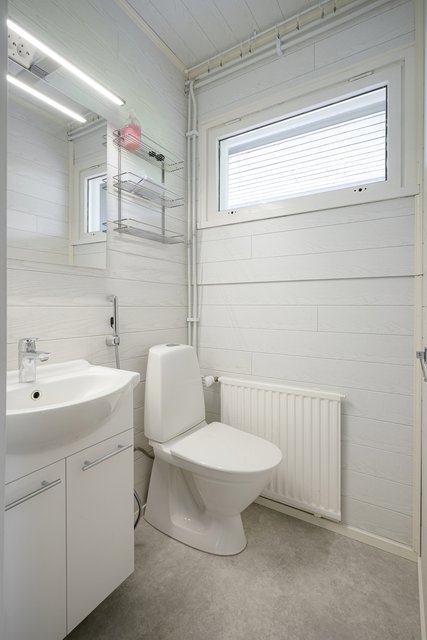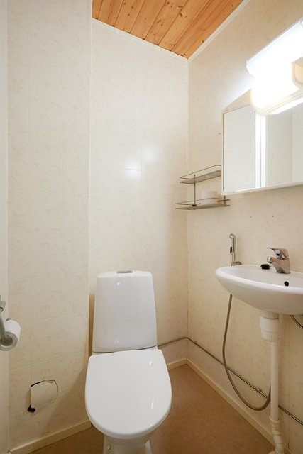- 2 erillistä wc:tä. Molemmissa muovimatot. Toisessa paneeliseinä ja toisessa muovitapetti. Toisessa peli ja toisessa peilikaappi.