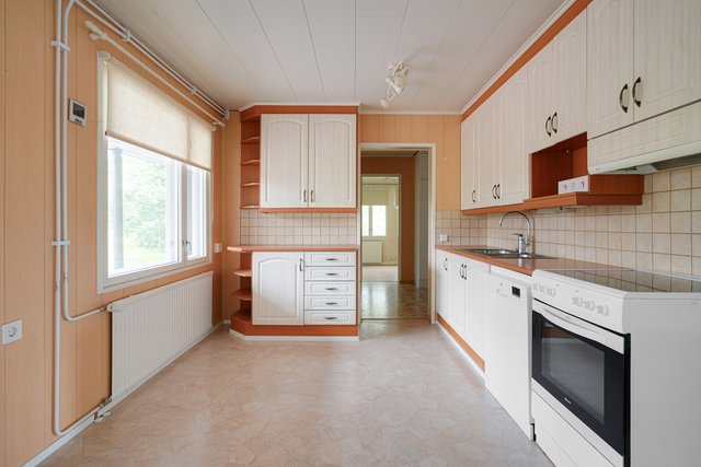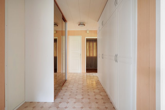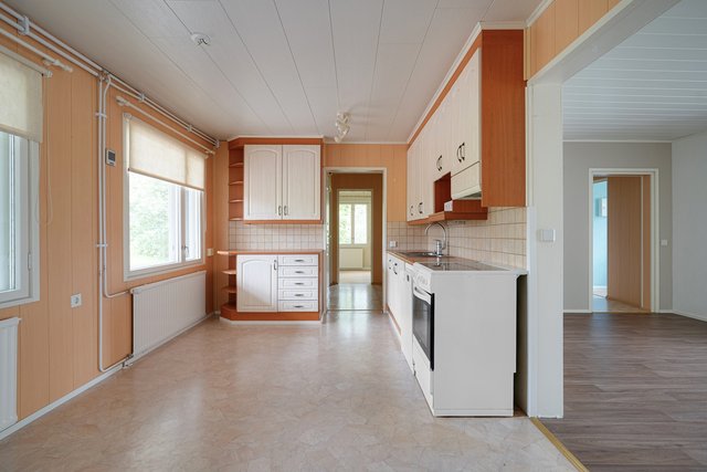 - Alkuperäisessä rakennuspiirroksessa mainitut pinta-alat: rakennusala 157 m2, huoneistoala 95 m2, talousala 51 m2. Rakennuslupapiirustuksissa pinta alatiedot: Huoneistoala 95 m2 ja kerrosala 157 m2. Taloa laajennettu 1983, 16 m2 (varastotiloja). Ei tarkistusmitattu. Pinta-alat saattavat tämän ikäisissä kohteissa (rekisteröity ennen 01.01.1992) poiketa olennaisestikin asuinrakennusten nykyisten mittaustapojen ja standardien (SFS 5139) mukaan laskettavasta asuintilojen pinta-alasta. Pinta-ala voi siis olla edellä mainittua pienempi tai suurempi.