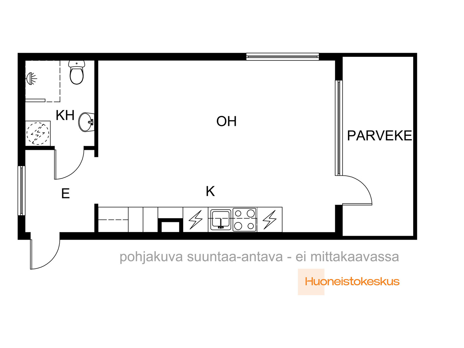 Yhdistetyssä olohuone/keittiössä on korkeat ikkunat kahteen ilmansuuntaan, myös lasitetulle parvekkeelle. Huoneiston levyinen lasitettu parveke kutsuu viihtymään.