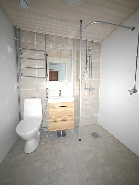 - Pesukoneliitäntä, suihkuseinä, peilikaappi, wc-istuin, suihku, ja kiinteät valaisimet, asennettuja erikoisvarusteita