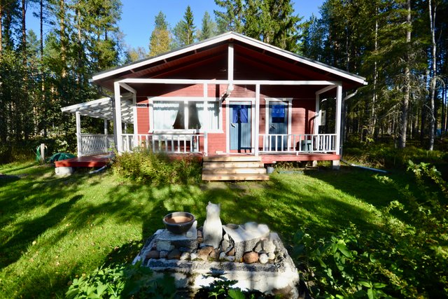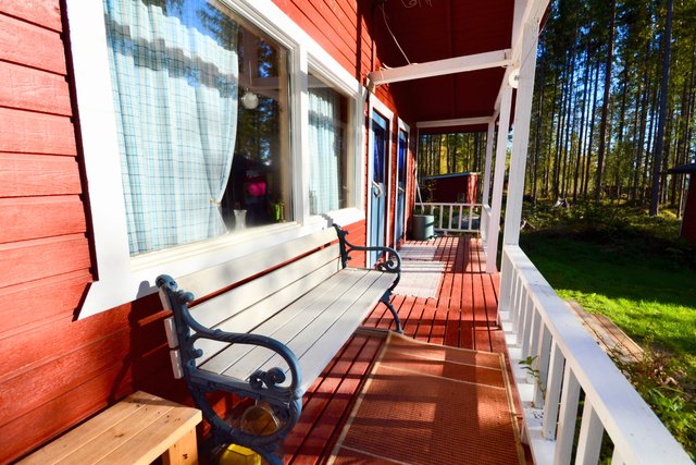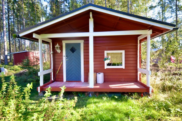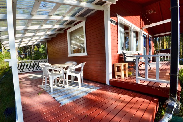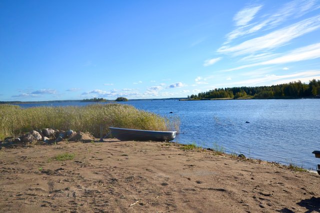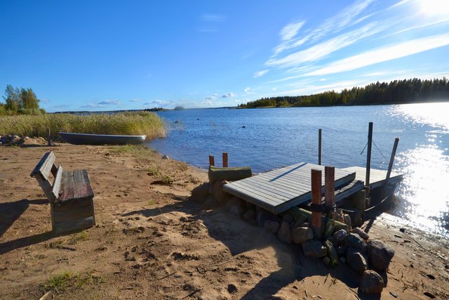 Aamu-uinnille on nautinto pulahtaa tien toisella puolella sijaitsevasta laiturista ja oma venepaikka kuuluu huvilalle myös, ilman kustannuksia.