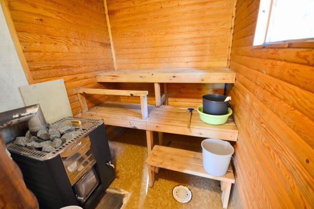 Kylpytilat ja sauna päämökin yhteydessä ja kompostoiva Bio-käymälä. Saunassa tietysti lempeät löylyt antava puukiuas. Hyvin hoidetussa pihassa myös puuliiteri ja perinteinen ulkohuussi.