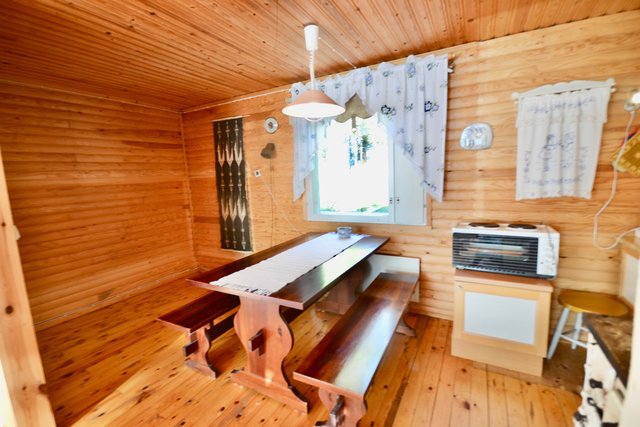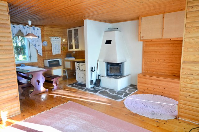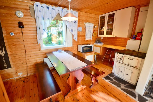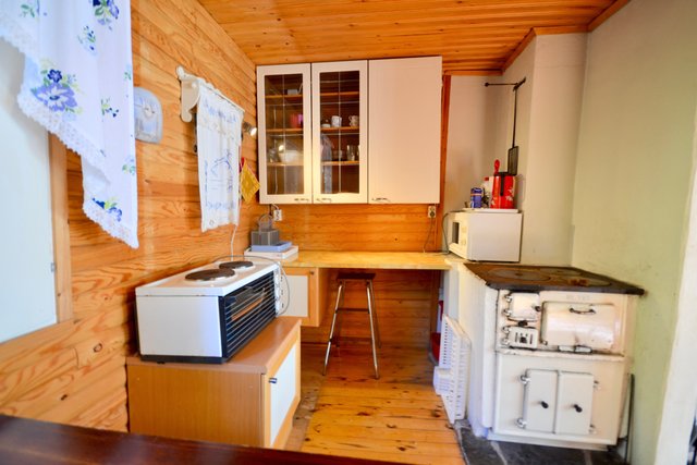 - Jääkaappi, mikroaaltouuni, liesi (Sähkölevy), ja puuliesi (Aito vanha ja toimiva puuhella.)