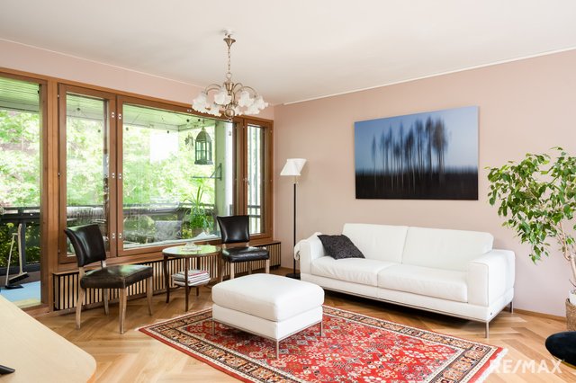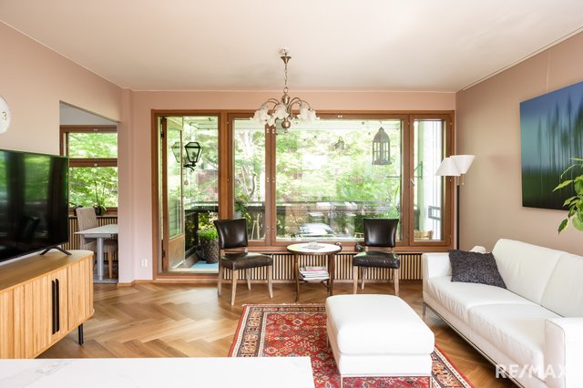 Asunnon oma sauna ja lasitettu parveke luovat täydelliset puitteet rentoutumiselle. Parveke avautuu luoteeseen, tarjoten näkymät sekä pihalle että Pohjoiskaarelle. Makuuhuone on rauhallinen ja tilava, varustettu koko seinän leveydelltä vaatekaapistoja. Hiljan uusitussa kylpyhuoneessa on modernit kalusteet.