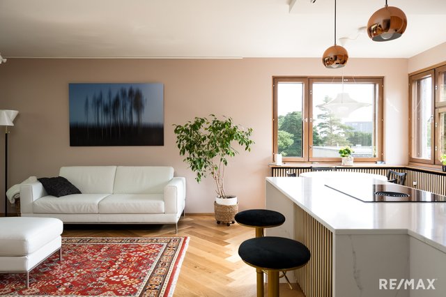 Tervetuloa tutustumaan valoisaan ja viihtyisään kaksioon Lauttasaaressa, Pohjoiskaarella. Tämä ylimmän kerroksen asunto tarjoaa rauhallista asumista suositulla alueella, vain kivenheiton päässä merestä. Asunnon uudistettu avokeittiö ja olohuone muodostavat avaran kokonaisuuden, jota korostavat leveät kalanruototammiparkettilattiat. Moderni keittiö on varustettu laadukkailla kodinkoneilla, integroidulla espressokeittimellä, induktioliedellä ja käyttöä kestävillä kvartsikomposiittityötasoilla.