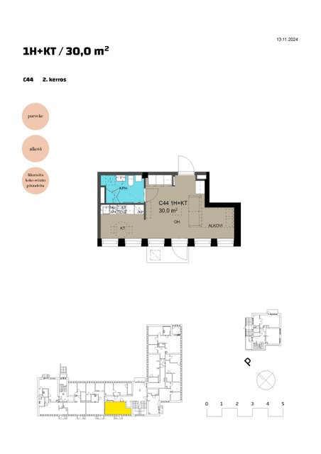 ASUNTO C44 / 1h+kt /30m2 ihanalla sisäänvedetyllä parvekkeella ja koko seinän pituudella ihania 50-luvun henkisiä ikkunoita! Tämä koti tulvii valoa!