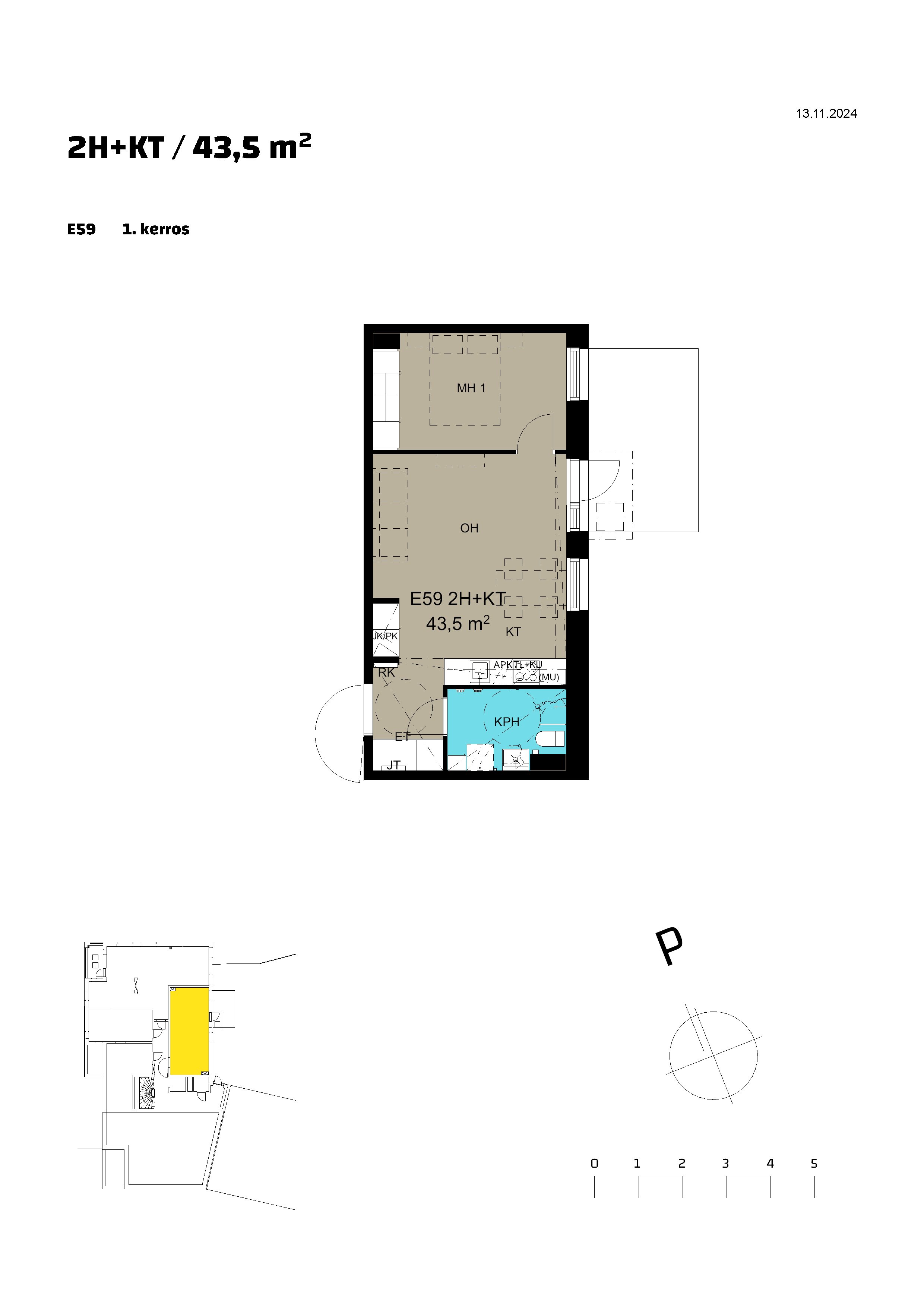 Asunto E 59 on huoneisto yhtiön sisäpihan tasossa. Huoneistolle kuuluu oma pihaosuus.