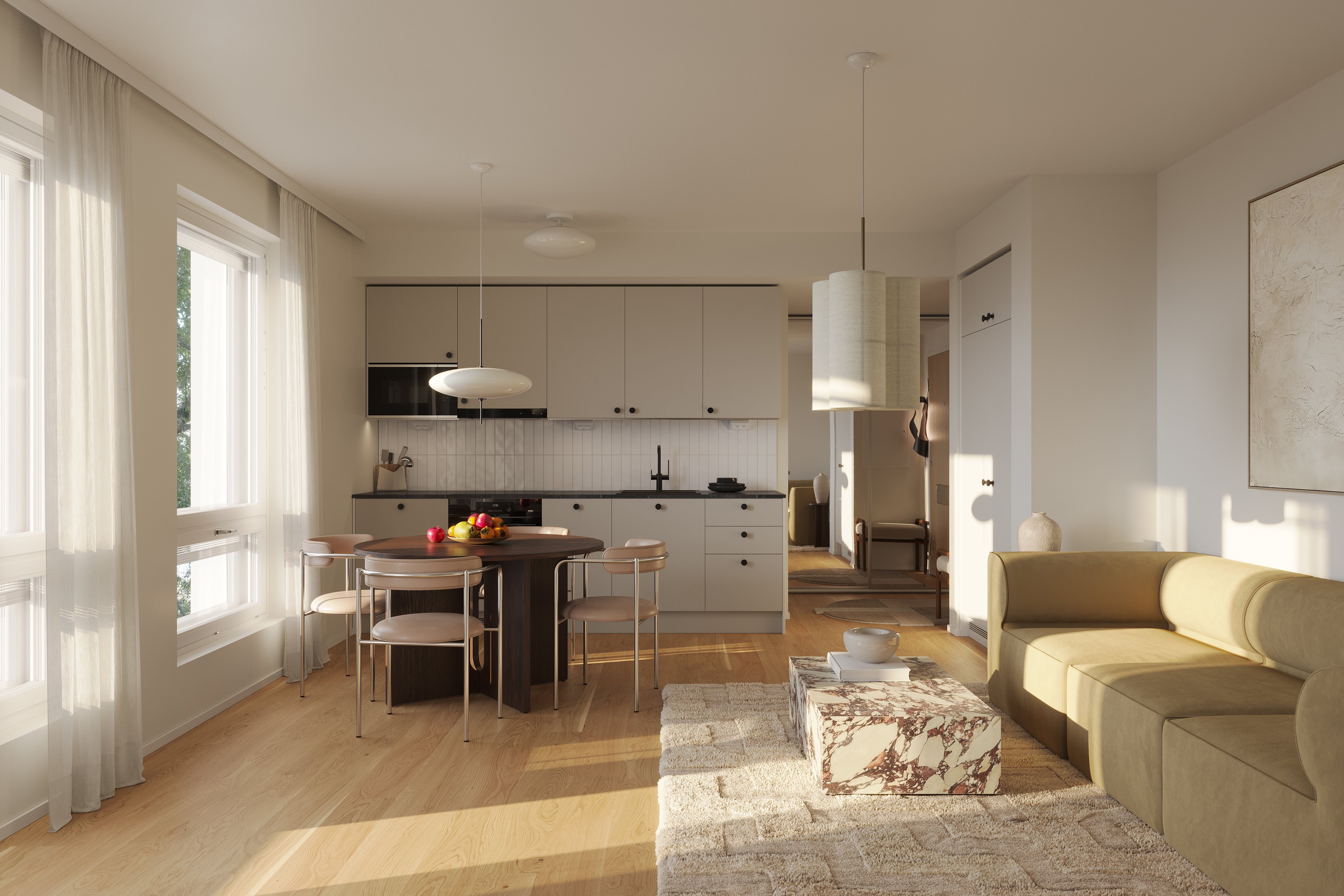 As Oy Helsingin Lauttasaaren Auringossa on 48 tarkkaan suunniteltua kotia, joissa jokainen neliö on tyylikkäästi toteutettu. Asunnoissa panostetaan laatuun: lautaparketit, huolellisesti valitut pintamateriaalit ja mahdollisuus toteuttaa yksilöllisiä sisustusratkaisuja tekevät kodista aidosti oman. Rakennuttajana toimii Jatke, joka tunnetaan tinkimättömästä laadustaan ja huolellisesta rakentamisesta.