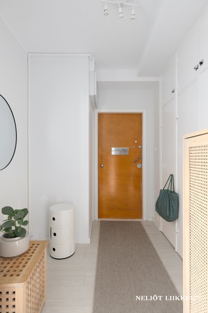Kokonaisuus hurmaa yksinkertaisuudellaan, sillä huoneistossa yhdistyy tehokas pohjaratkaisu, loistava sijainti ja rauhallinen ympäristö.