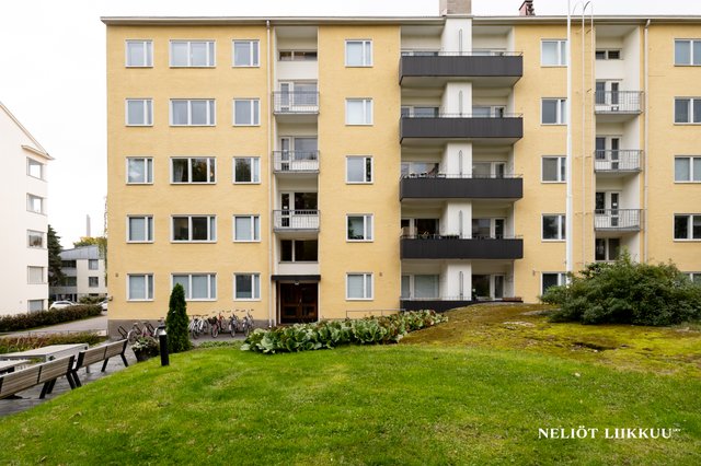 Omalla tontillaan seisova rakennus edustaa hyvin 1950-luvun Lauttasaarta. Taloyhtiö on hyvin hoidettu ja remontteja on tehty vuosien mittaan ahkerasti, mm. LVIS-saneeraus/putkiremontti vuosina 2016–2017. Asumiskustannukset ovat kohtuulliset, hoitovastike on tällä hetkellä 4,8 € per jyvitetty neliö (tässä huoneistossa 47 m²).