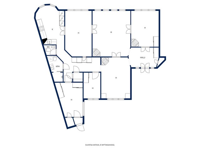 - Ei tarkistusmitattu. Pinta-alat saattavat tämän ikäisissä kohteissa (yhtiö rekisteröity ennen 01.01.1992) poiketa olennaisestikin asuinrakennusten nykyisten mittaustapojen ja standardien (SFS 5139) mukaan laskettavasta asuintilojen pinta-alasta. Pinta-ala voi siis olla edellä mainittua pienempi tai suurempi.