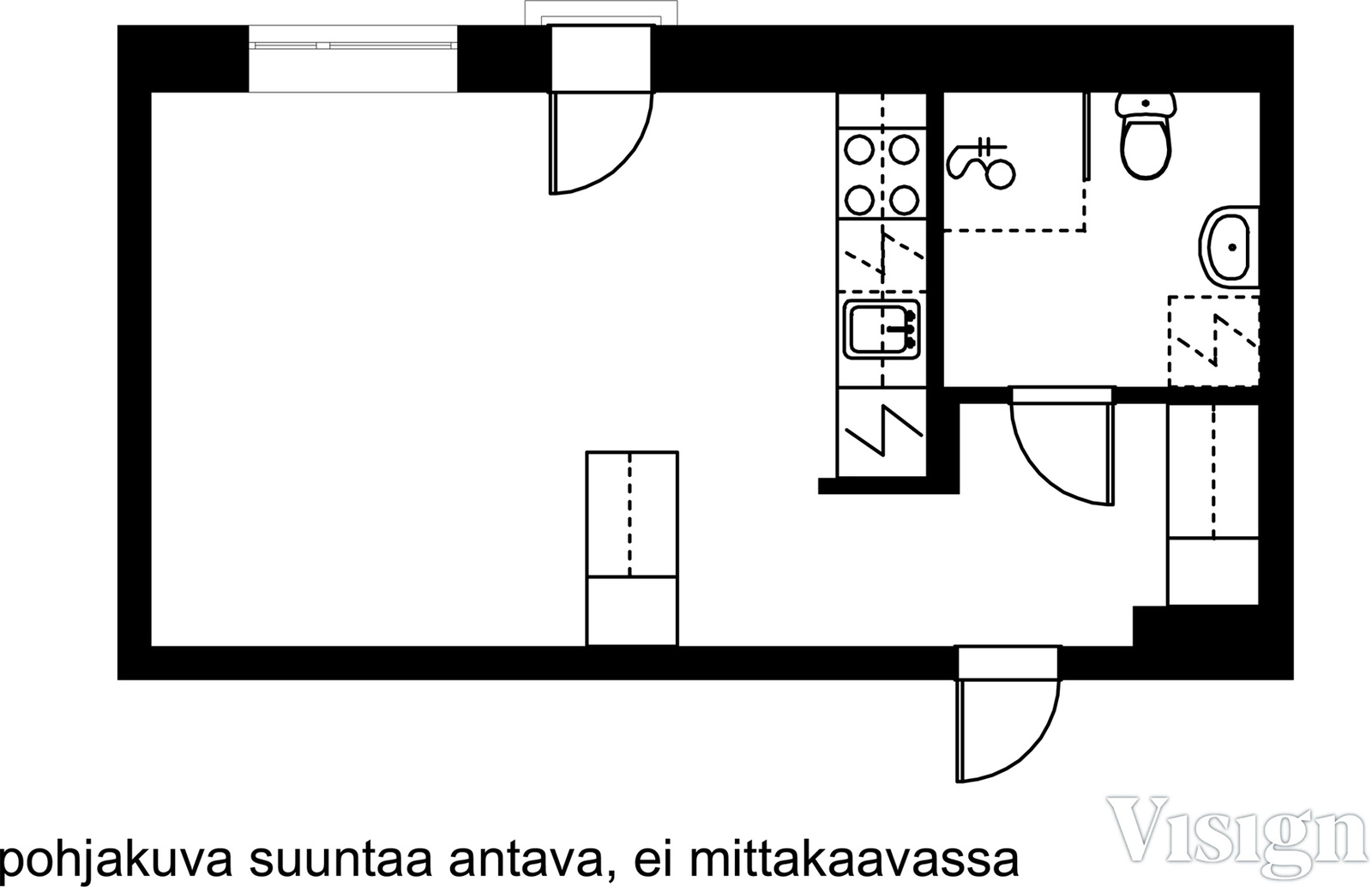 - huone/keittiötila yhtä avaraa tilaa, lattiat parkettia