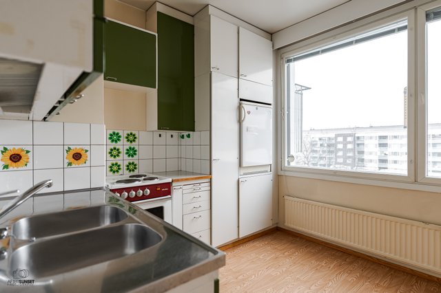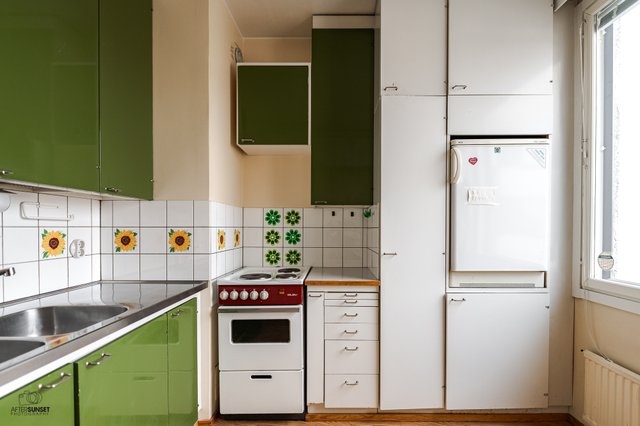 Asunnossa on alkuperäiskuntoinen keittiö, joka tarjoaa mahdollisuuden luoda unelmiesi keittiön. Kylpyhuone on hiljattain uusittu, ja sieltä löytyy kaikki tarpeellinen, kuten pesukoneliitäntä. Tilava lasitettu parveke tuo lisämukavuutta ja toimii loistavana paikkana rentoutumiseen. Olohuoneen voisi jopa jakaa kahdeksi huonetilaksi.