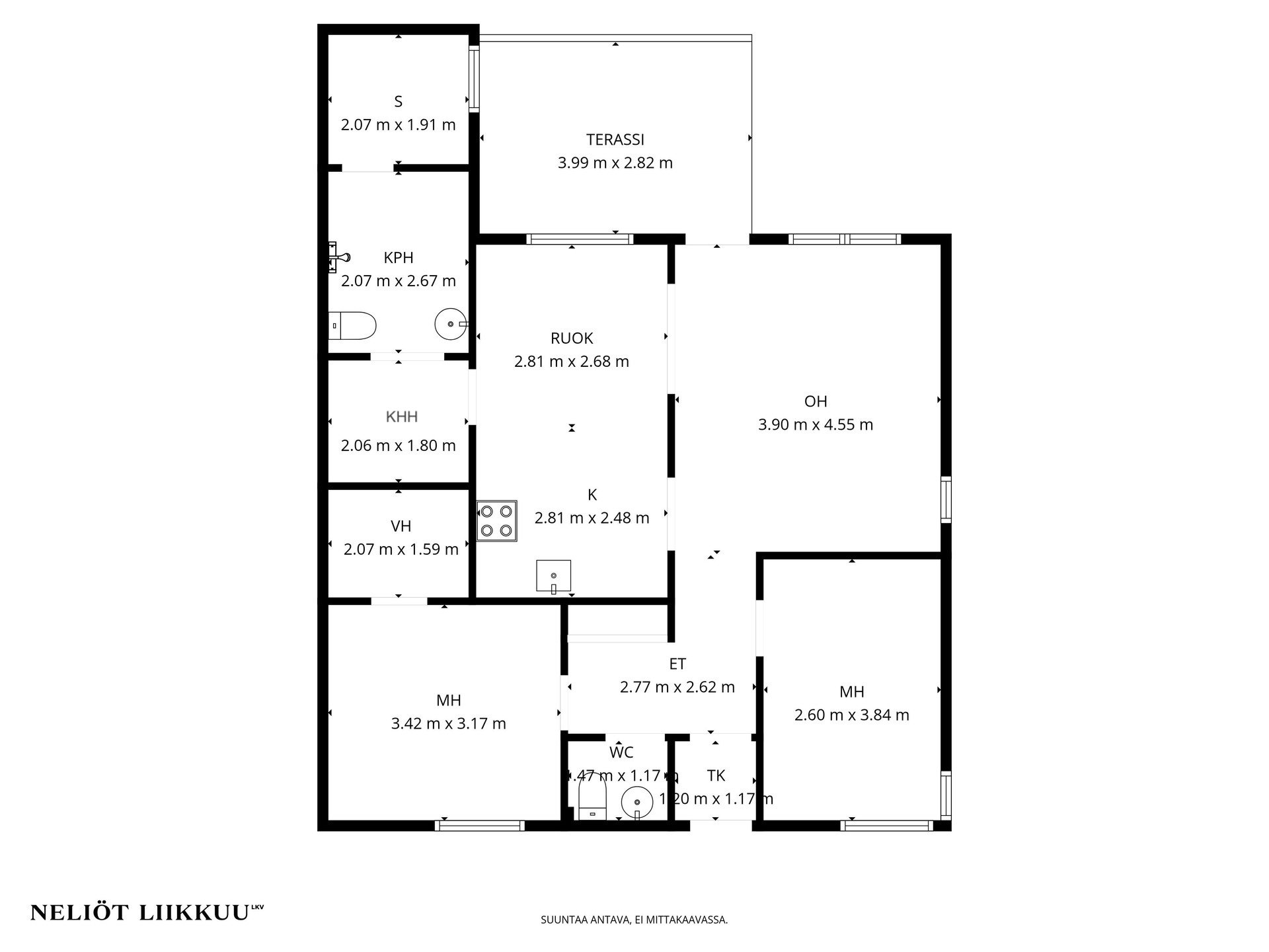 - Ei tarkistusmitattu. Pinta-ala voi siis olla edellä mainittua pienempi tai suurempi.