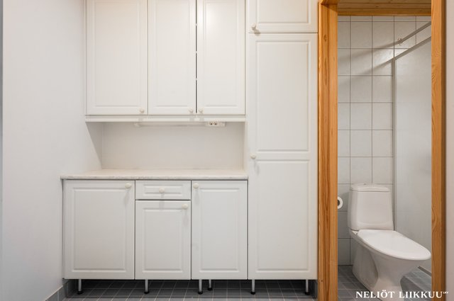 - Lattialämmitys, pyykkikaapit, ja pöytätaso